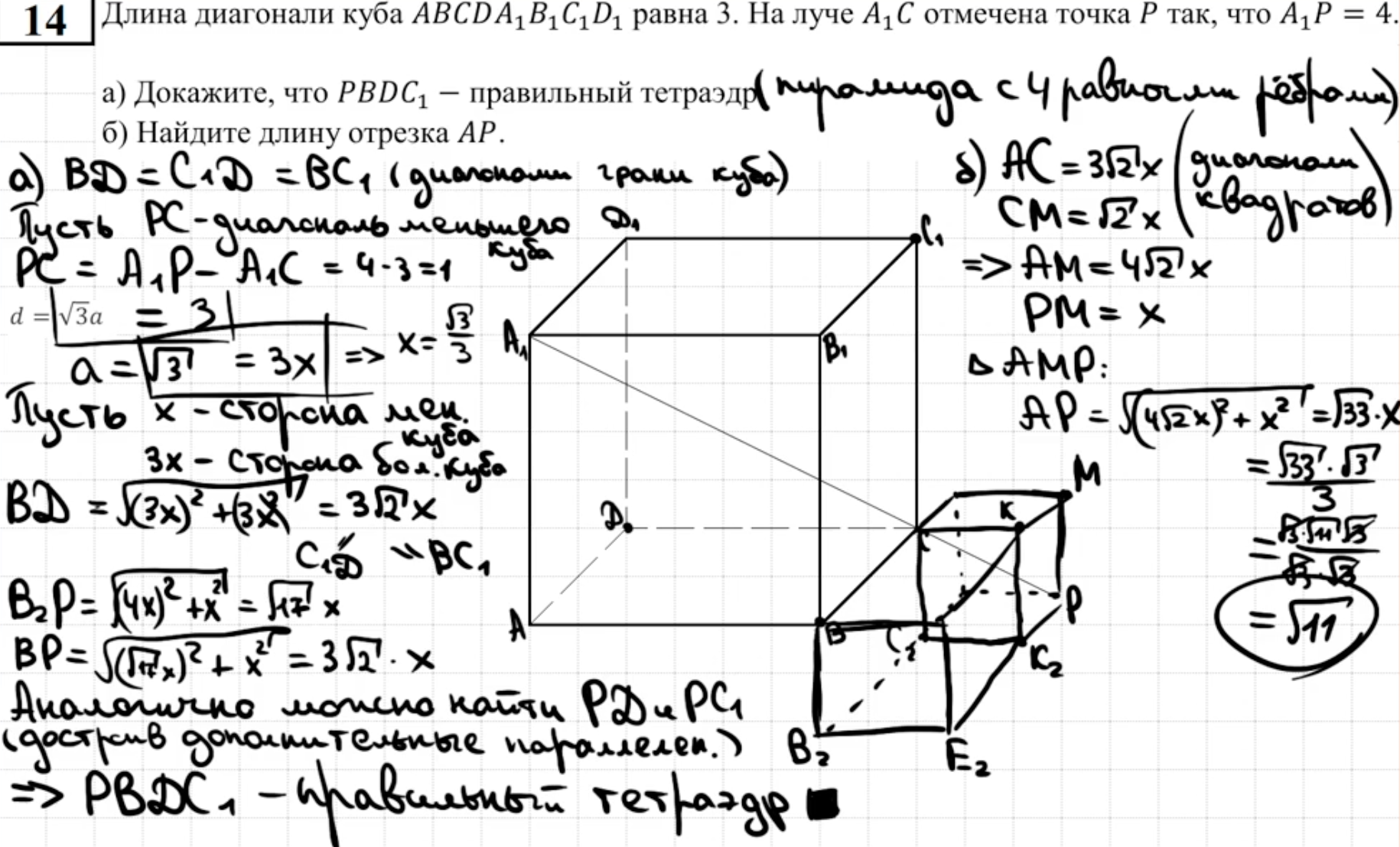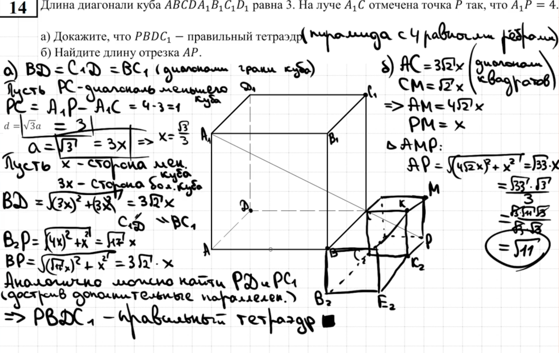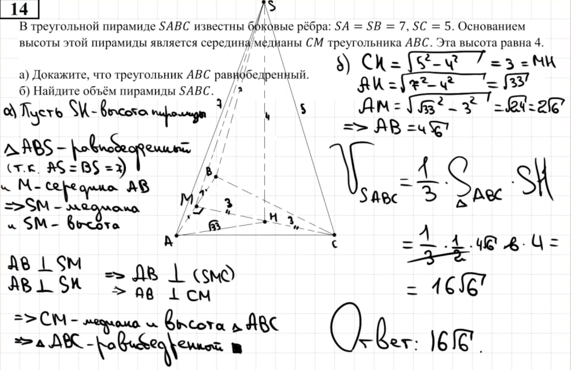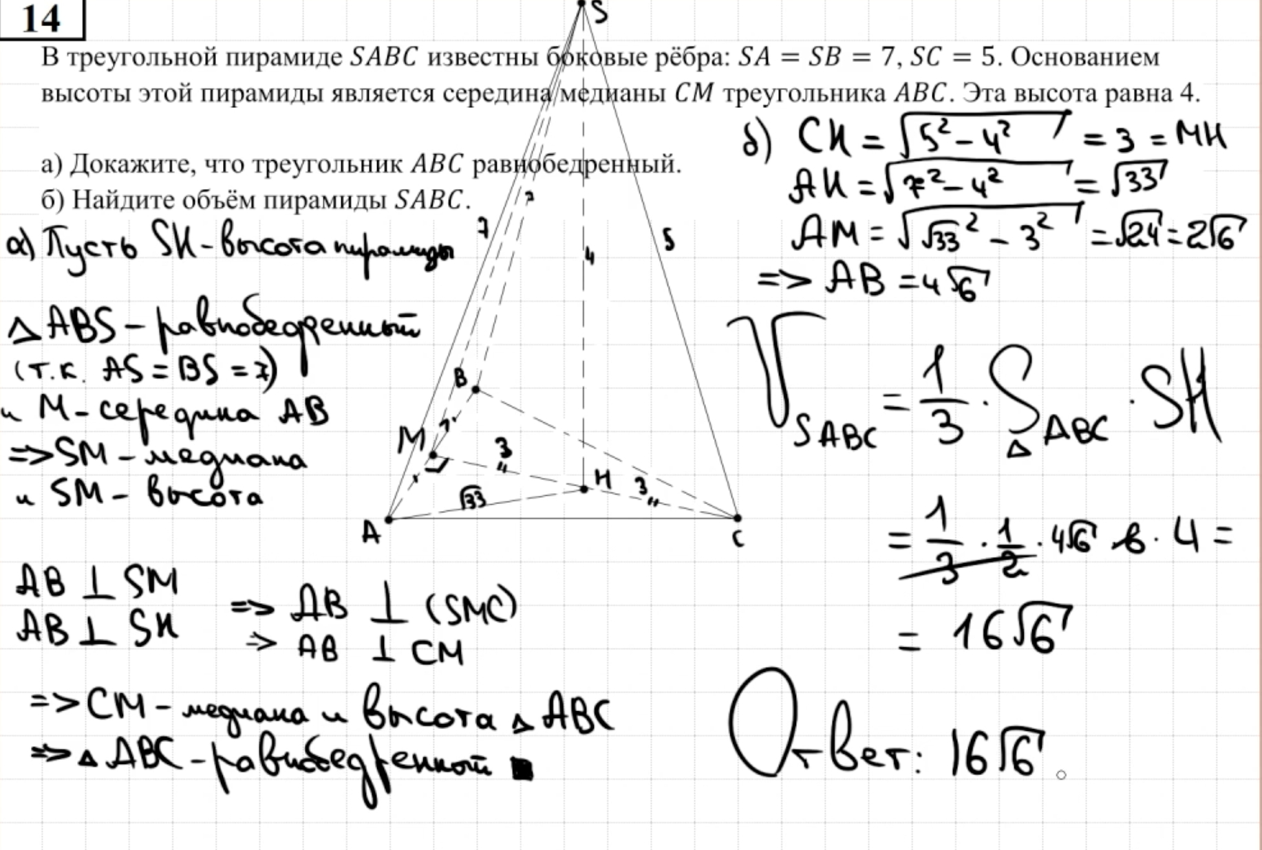 14.13 - 14.14 Докажите, что пирамида - правильный тетраэдр или что пирамида правильная (пункт а)