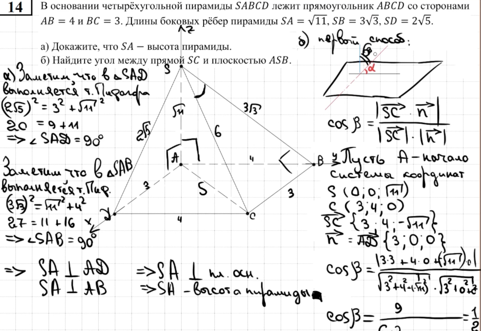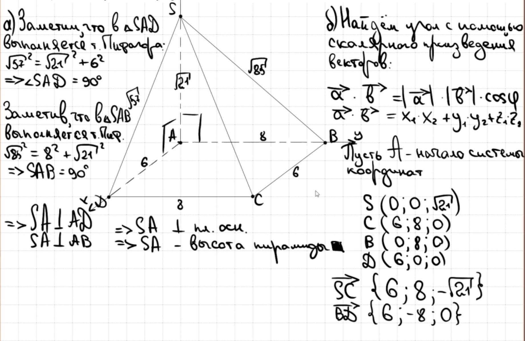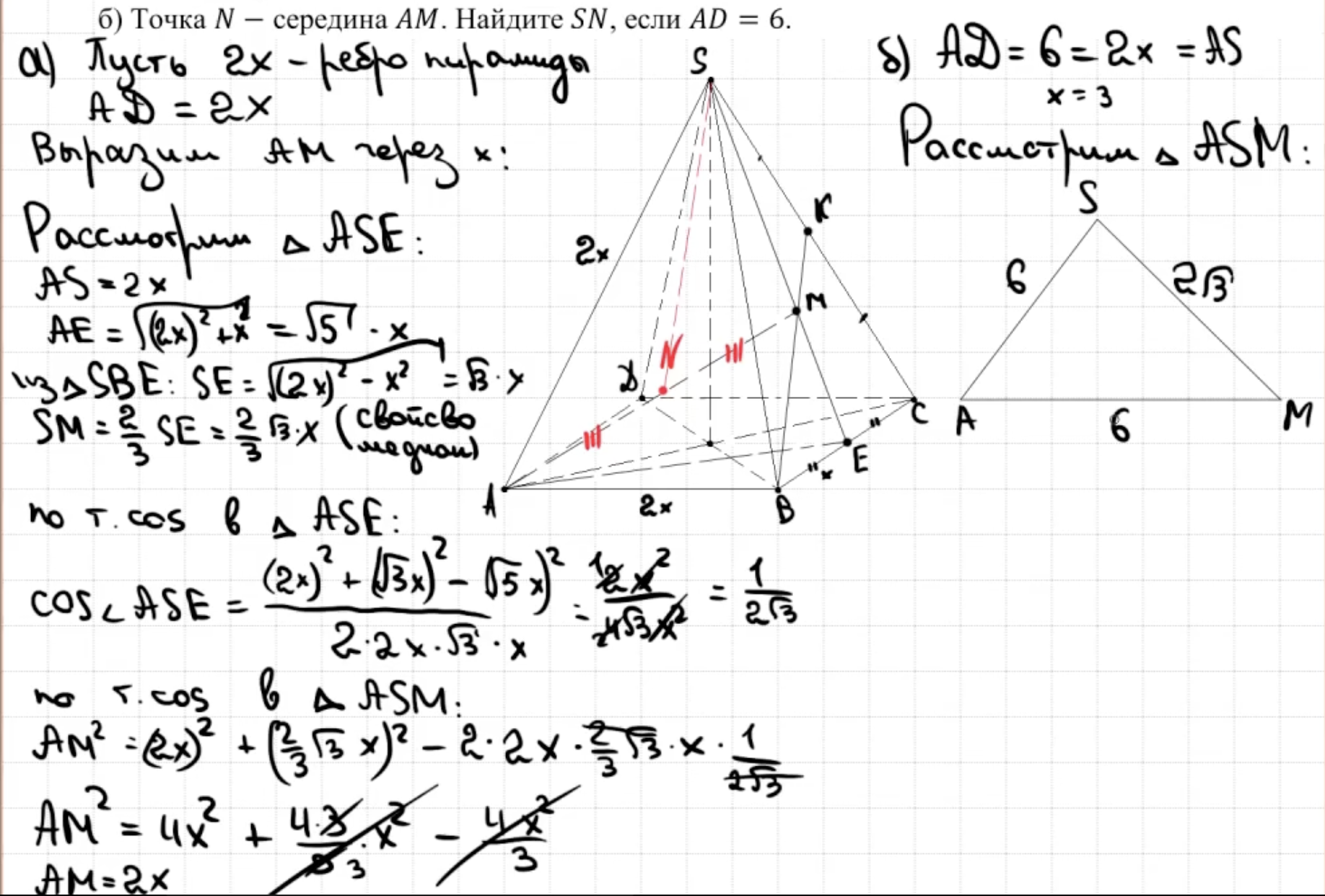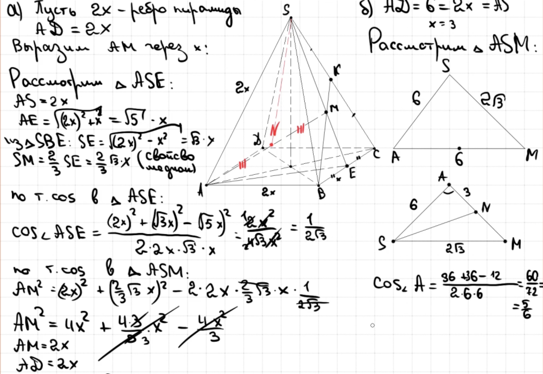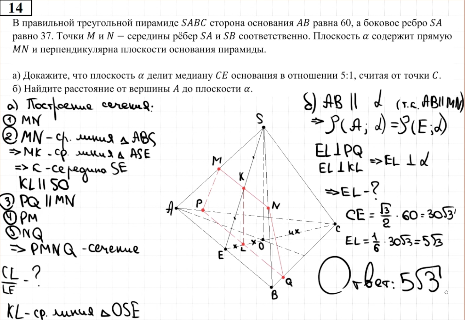14.13 - 14.14 Докажите, что пирамида - правильный тетраэдр или что пирамида правильная (пункт а)