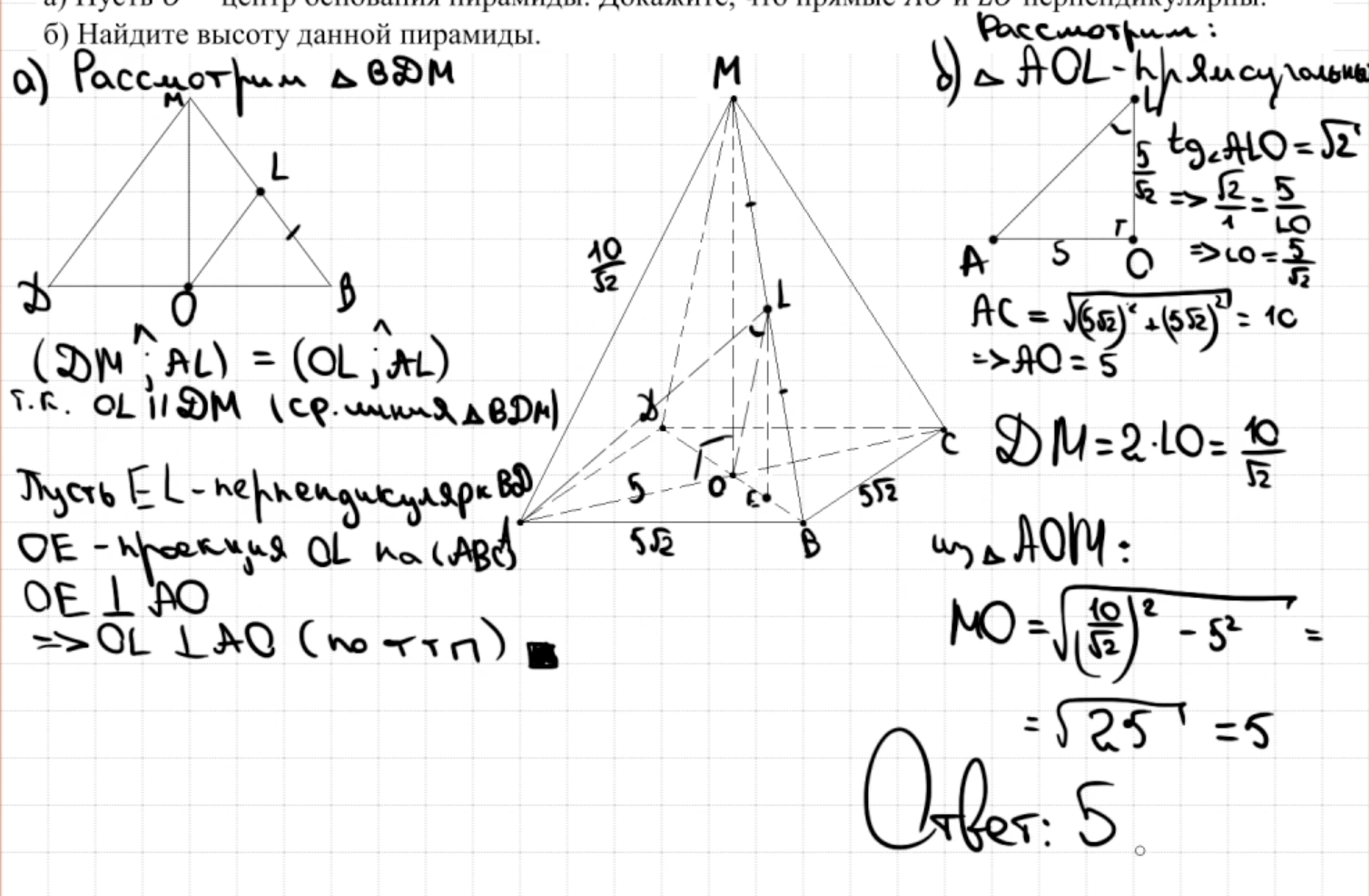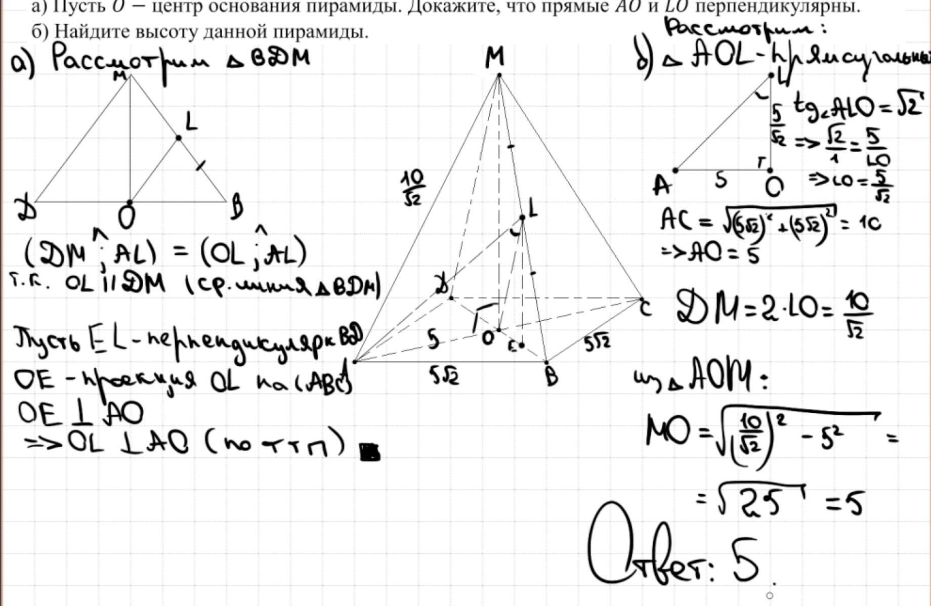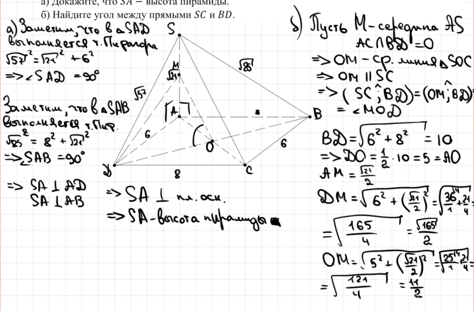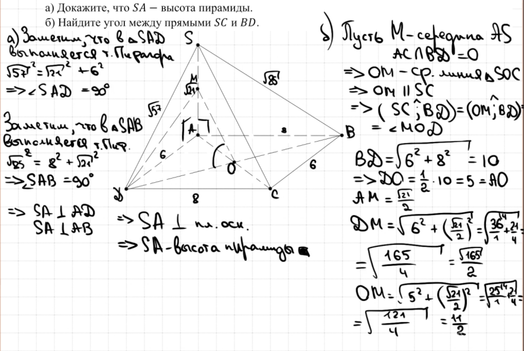 14.13 - 14.14 Докажите, что пирамида - правильный тетраэдр или что пирамида правильная (пункт а)