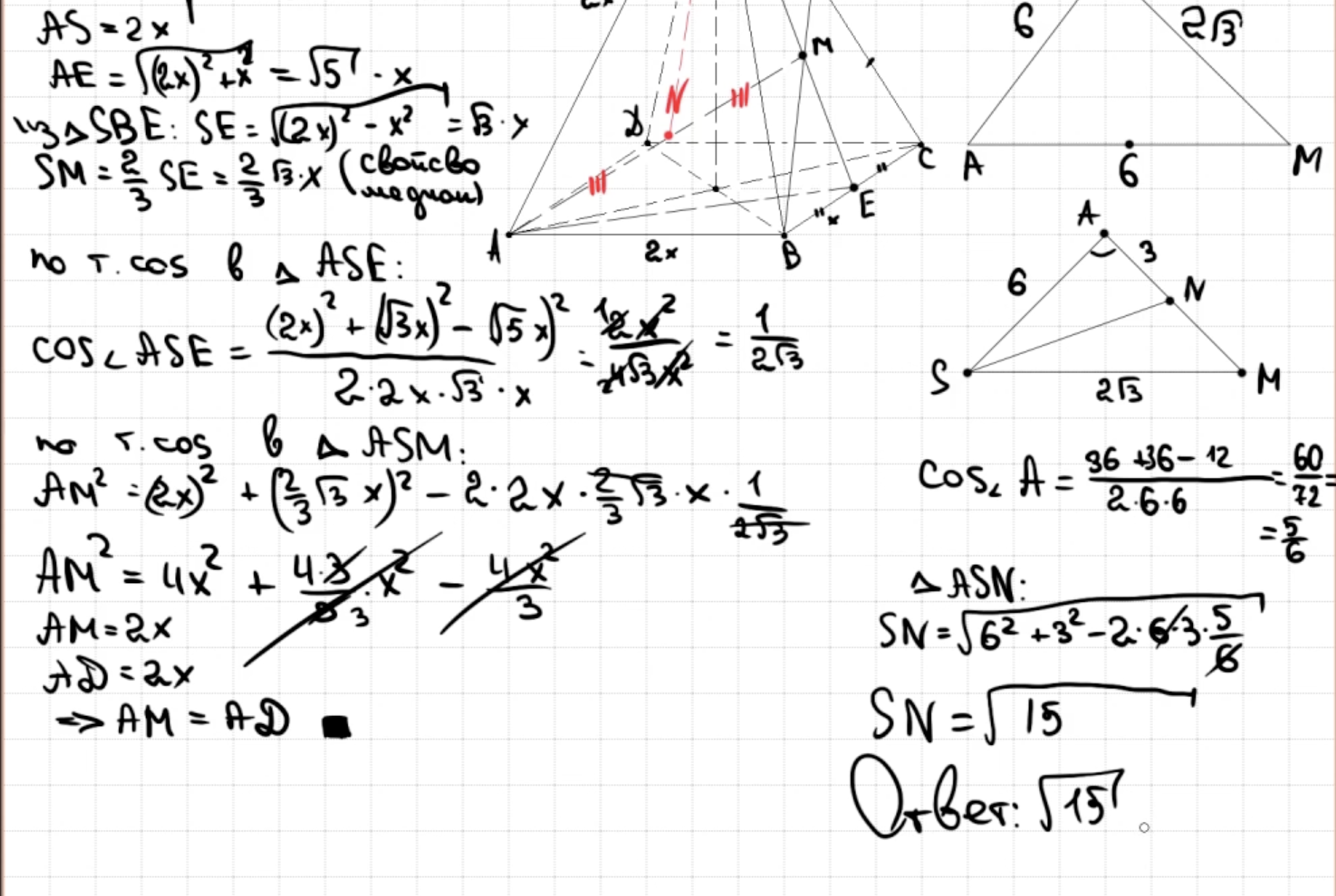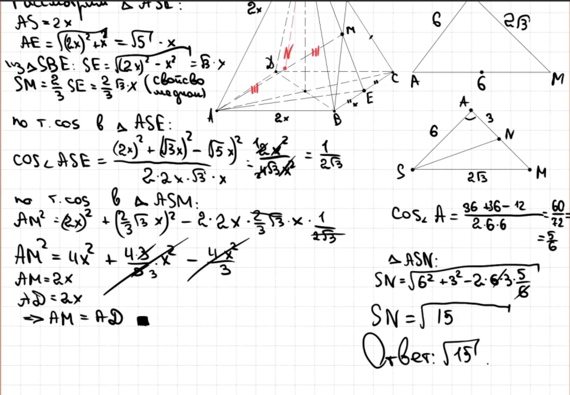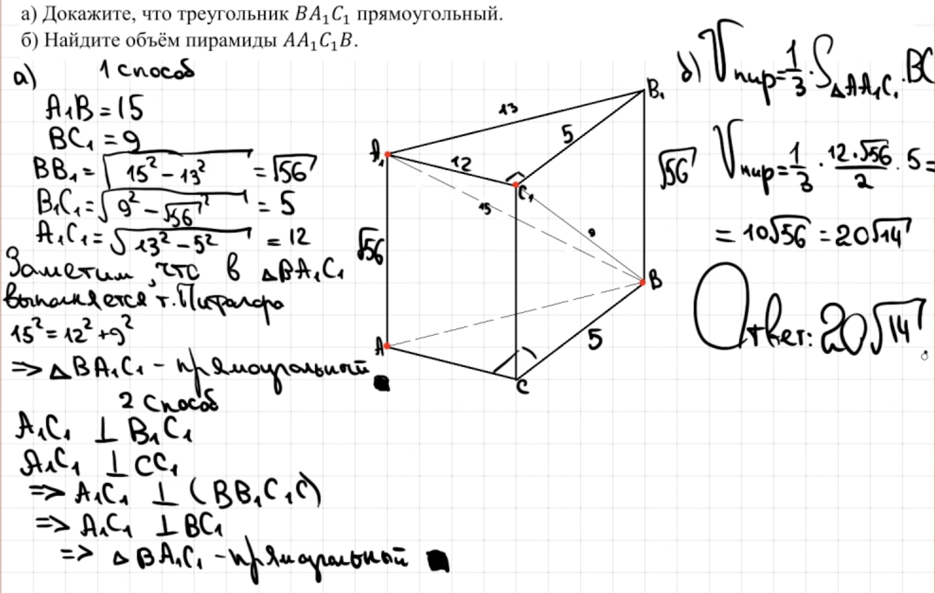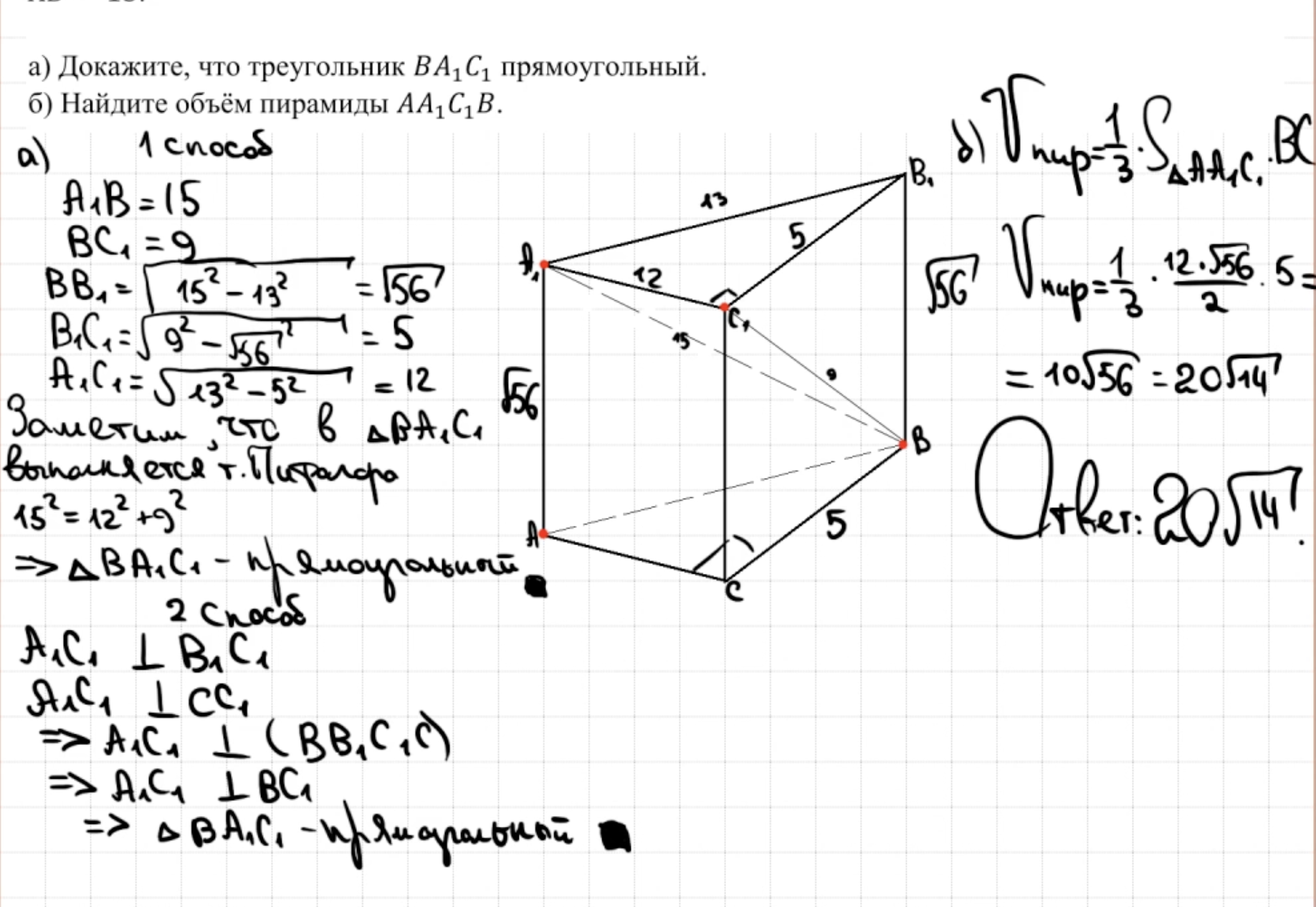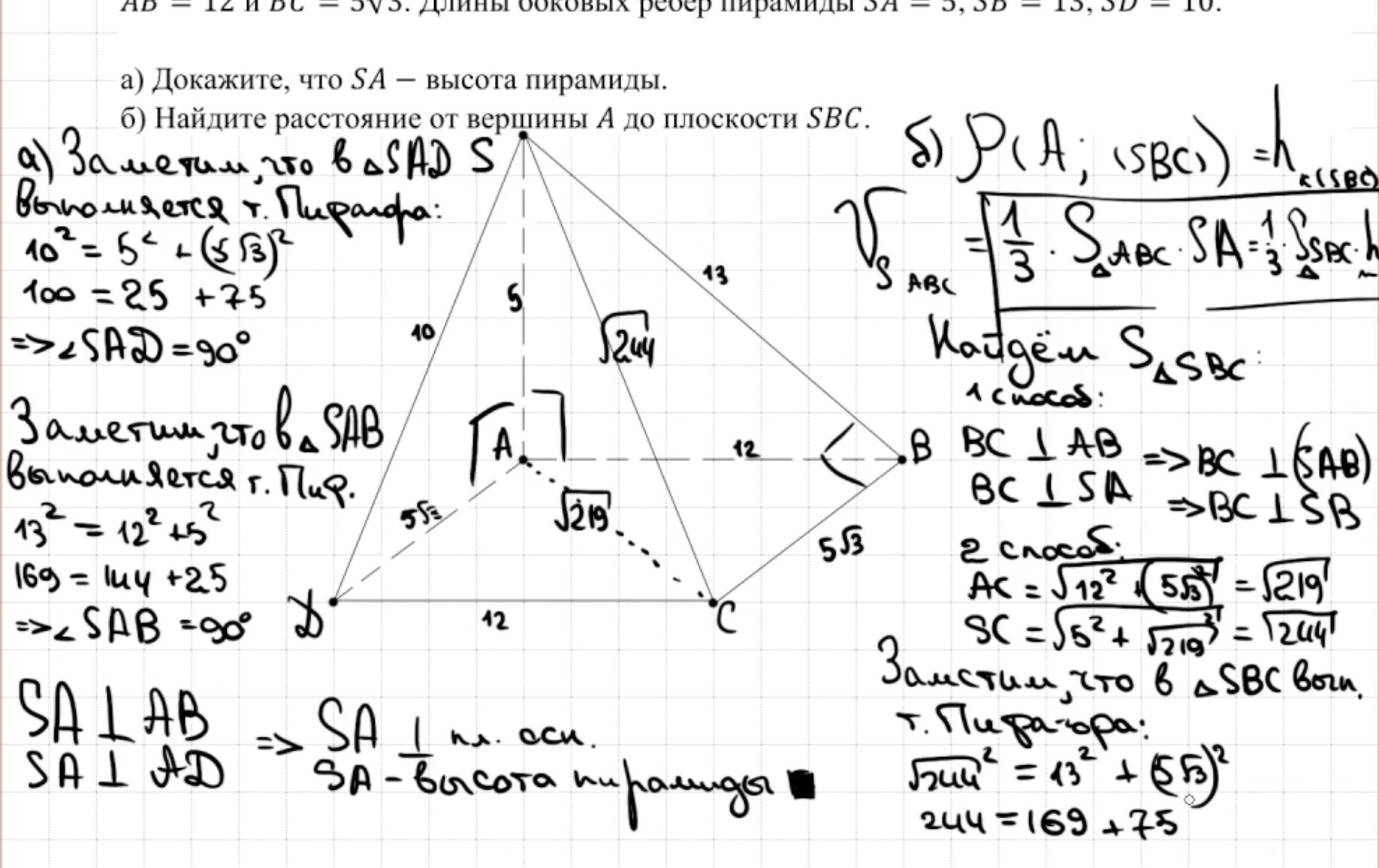 14.13 - 14.14 Докажите, что пирамида - правильный тетраэдр или что пирамида правильная (пункт а)