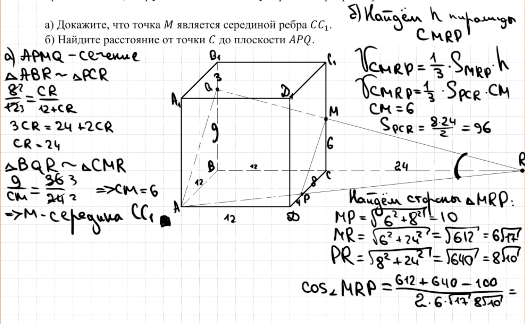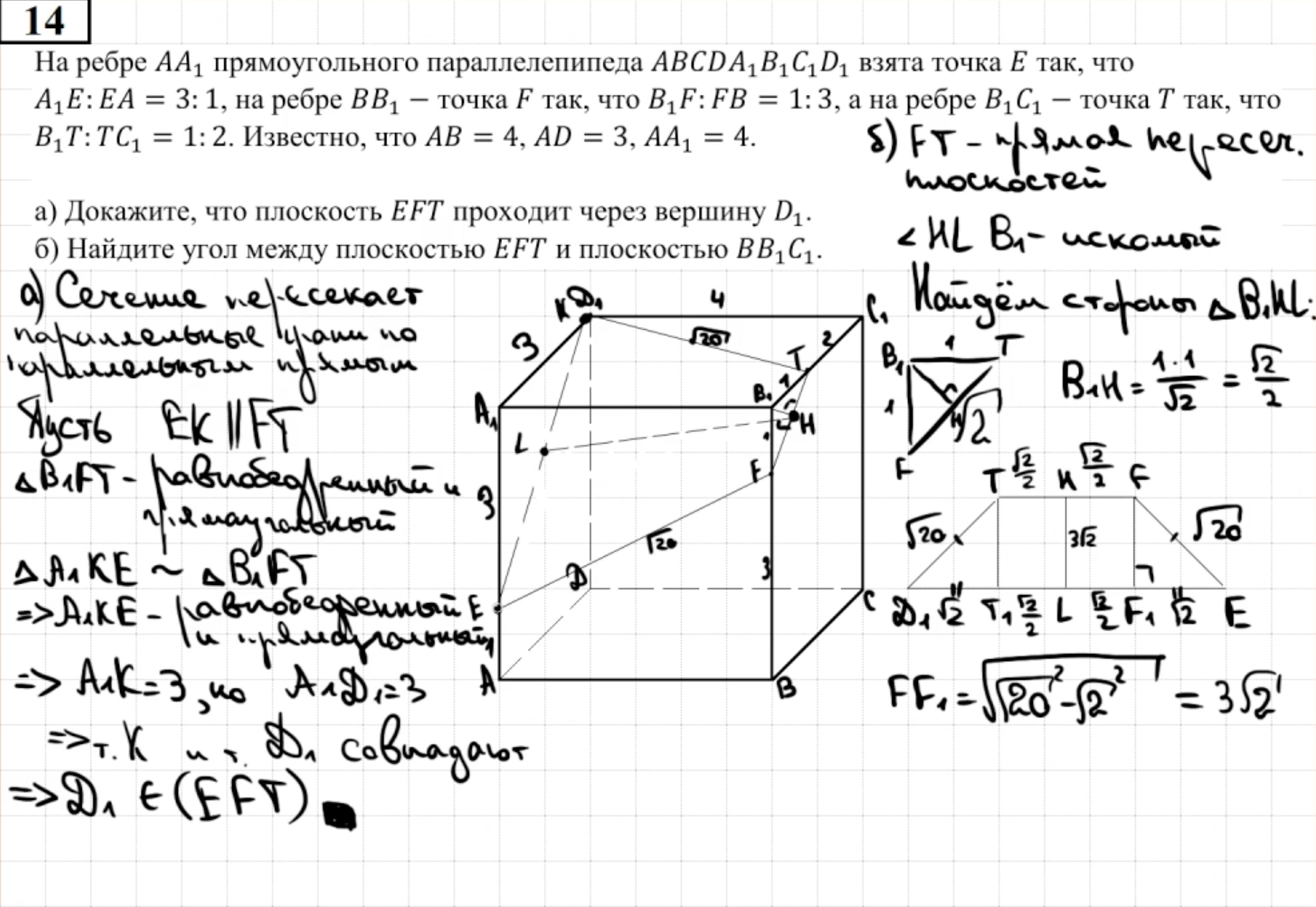 14.11 - 14.12 Докажите, что плоскость проходит через конкретную точку (пункт а)
