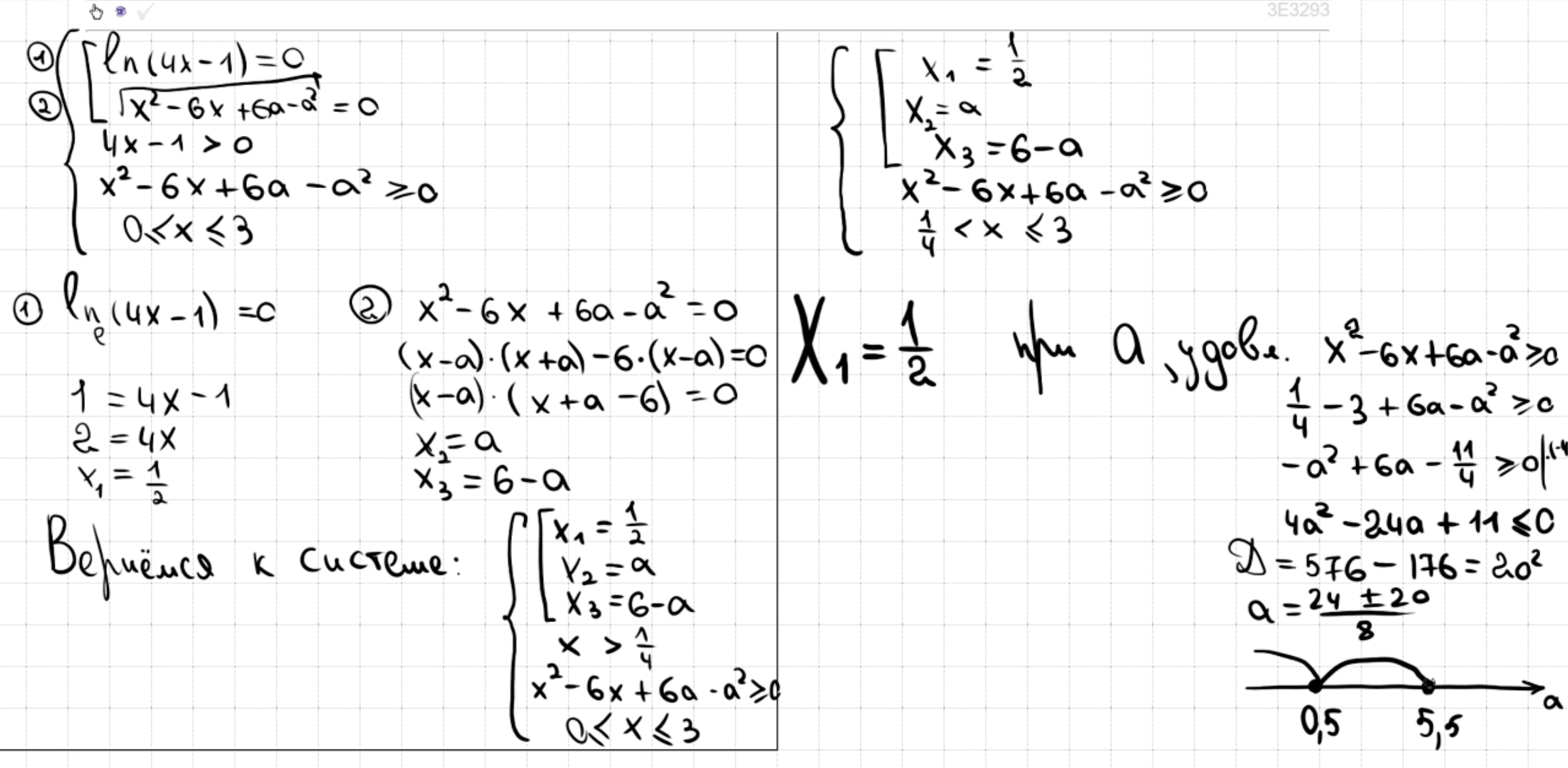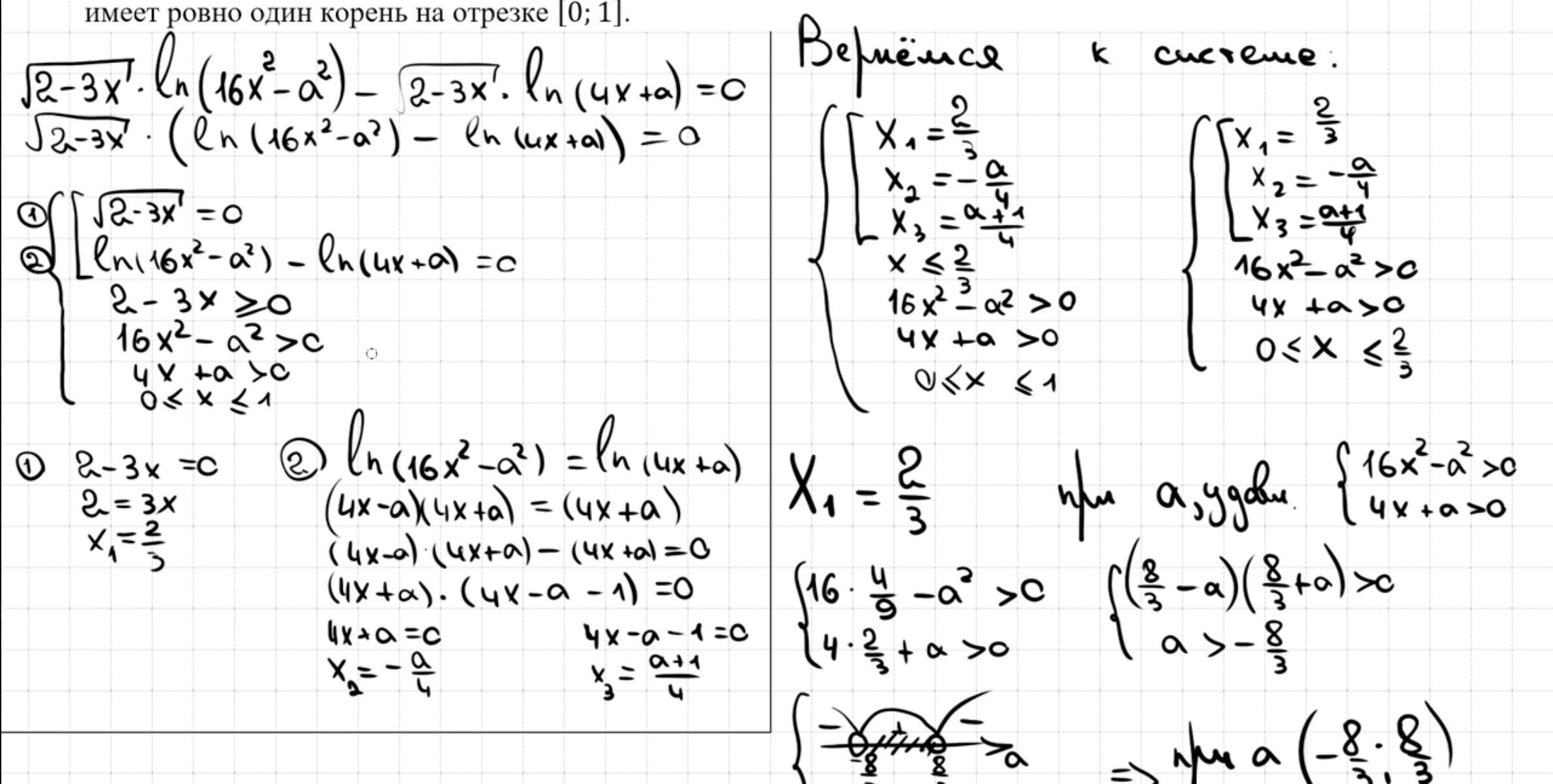 18.33 - 18.34 Один корень на отрезке. Система с логарифмами